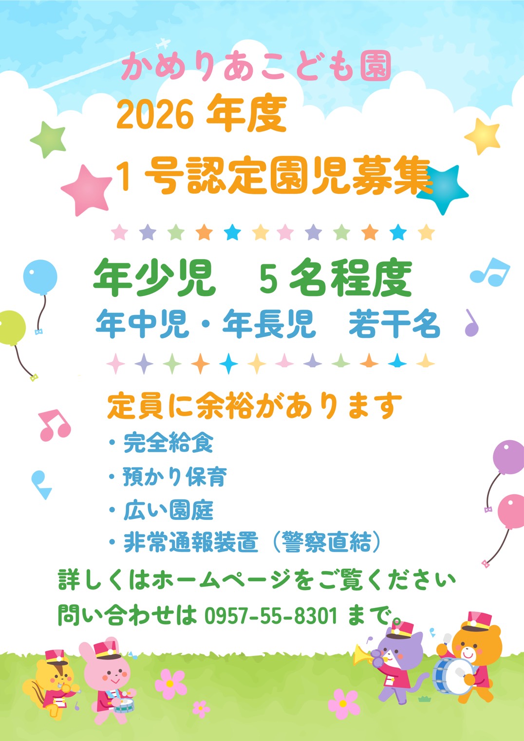 【かめりあこども園】2026年4月1号認定園児の追加募集